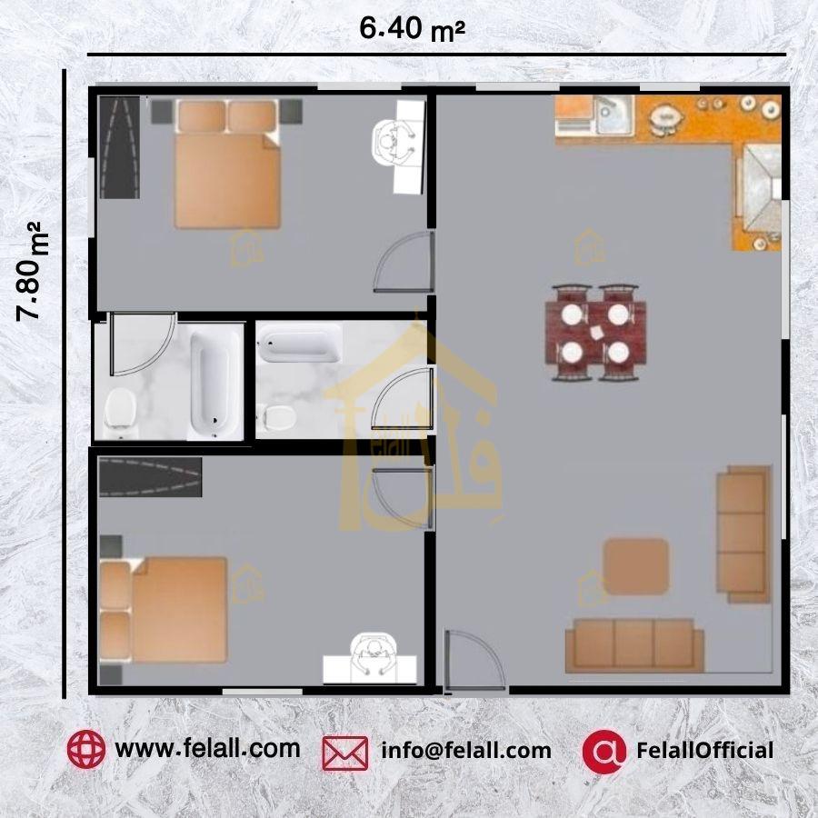 🛌2 oda | 🔲 1 salon | 🛀 2 banyo